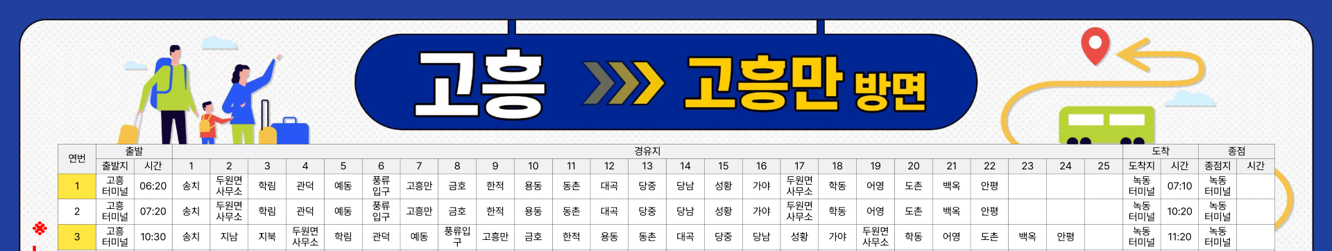 고흥 시외버스 터미널에서 출발하는 시내버스 시간표 - 고흥 군청 자료