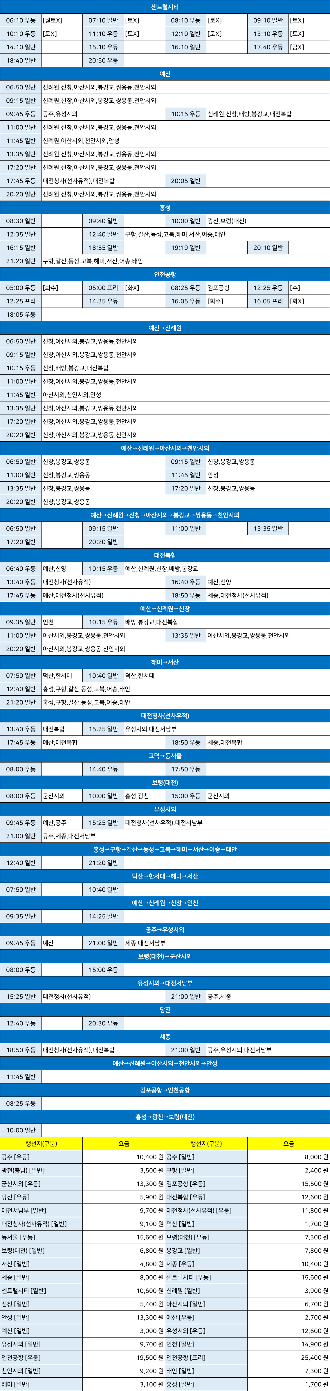 내포신도시환승센터시외고속버스정류장 시간표/요금표 2025년 03월 27일 기준