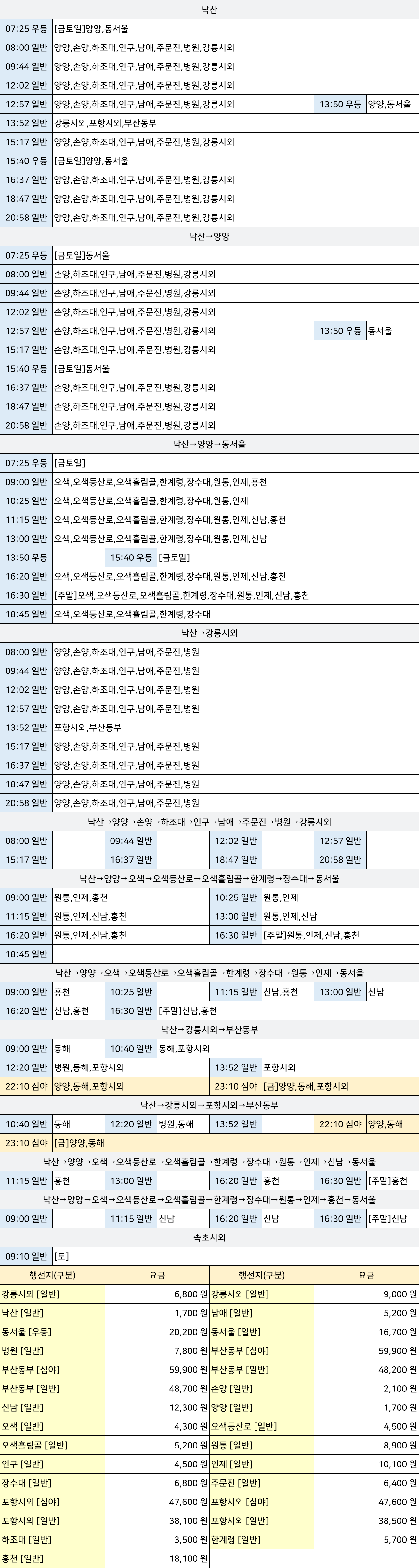 물치직행시외고속버스터미널 시간표 [물치직행버스정류장 물치직행버스정류소 설악산입구터미널 대포동터미널]