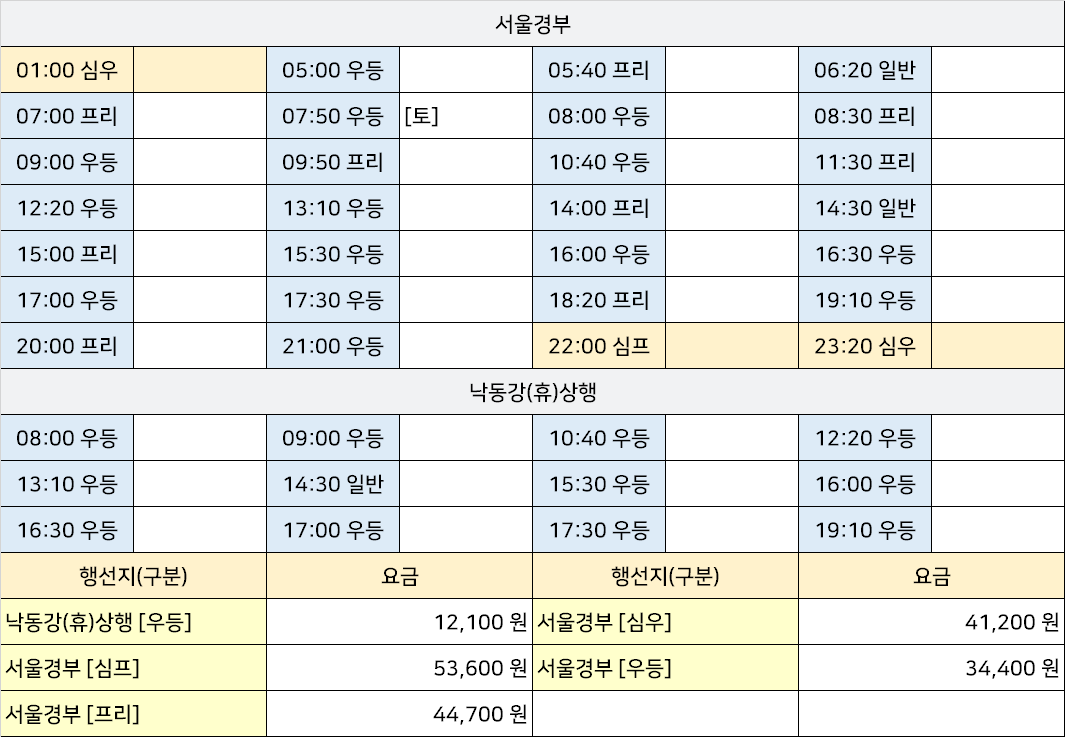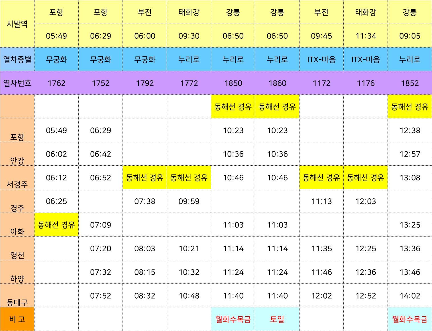 포항 고속버스 터미널 시간표/요금표 2025년 09월 02일 기준