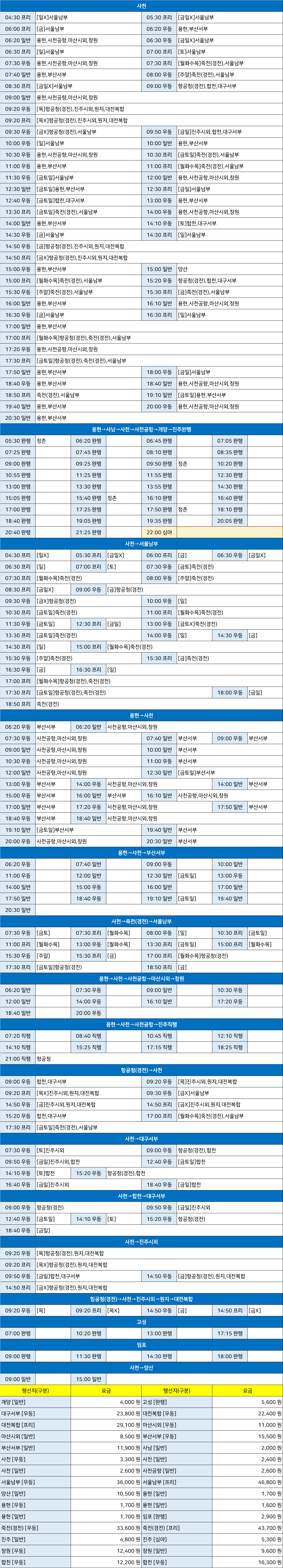 삼천포 시외버스 터미널 시간표/요금표 2025년 03월 31일 기준