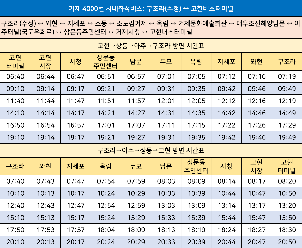 거제 4000번 시내좌석버스: 구조라(수정) ↔ 고현버스터미널