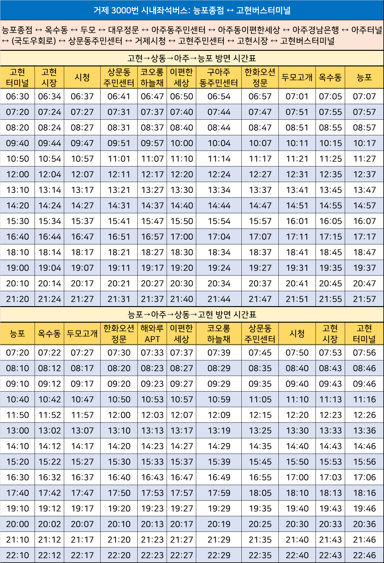 거제 3000번 시내좌석버스: 능포종점 ↔ 고현버스터미널