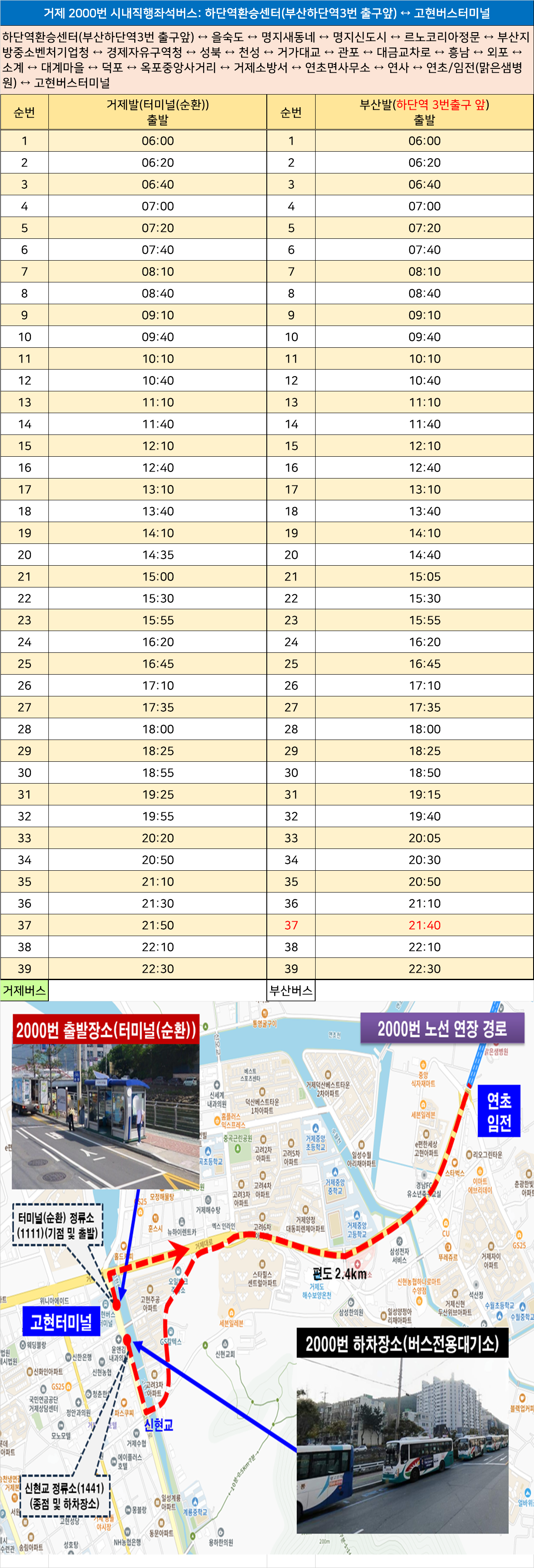 거제 2000번 시내직행좌석버스: 하단역환승센터(부산하단역3번 출구앞) ↔ 고현버스터미널