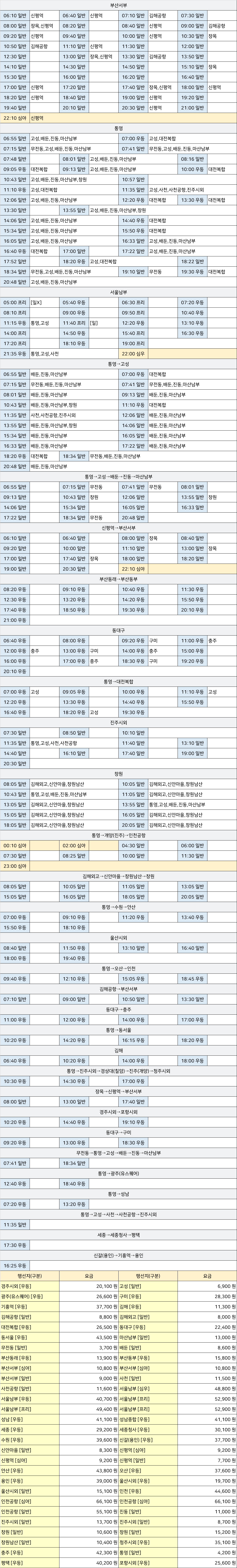 거제고현 시외버스 터미널 시간표/요금표 2025년 09월 06일 기준