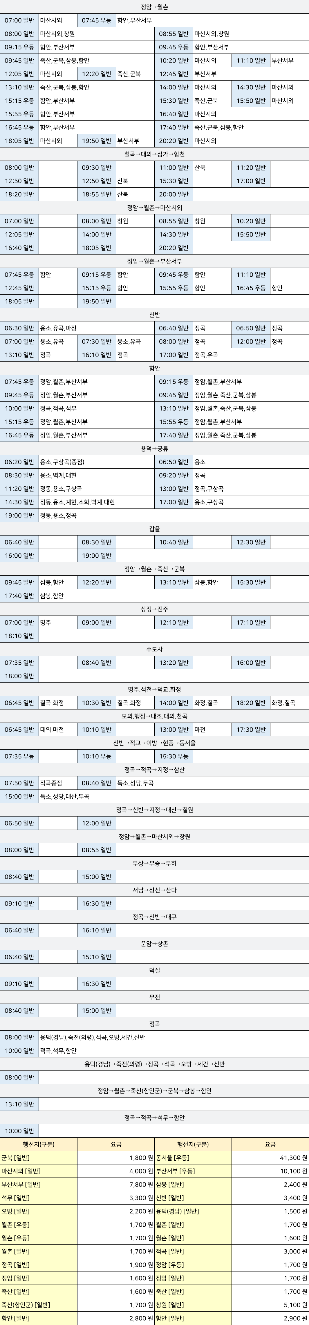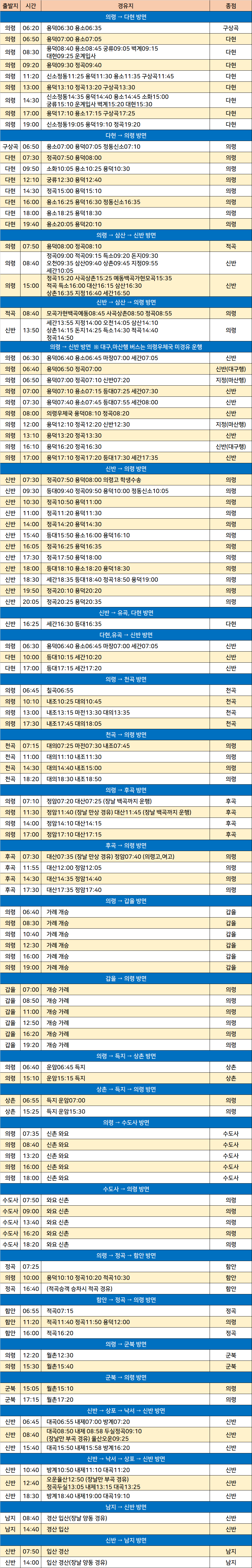 의령 시외버스 터미널 시간표/요금표 2025년 04월 12일 기준
