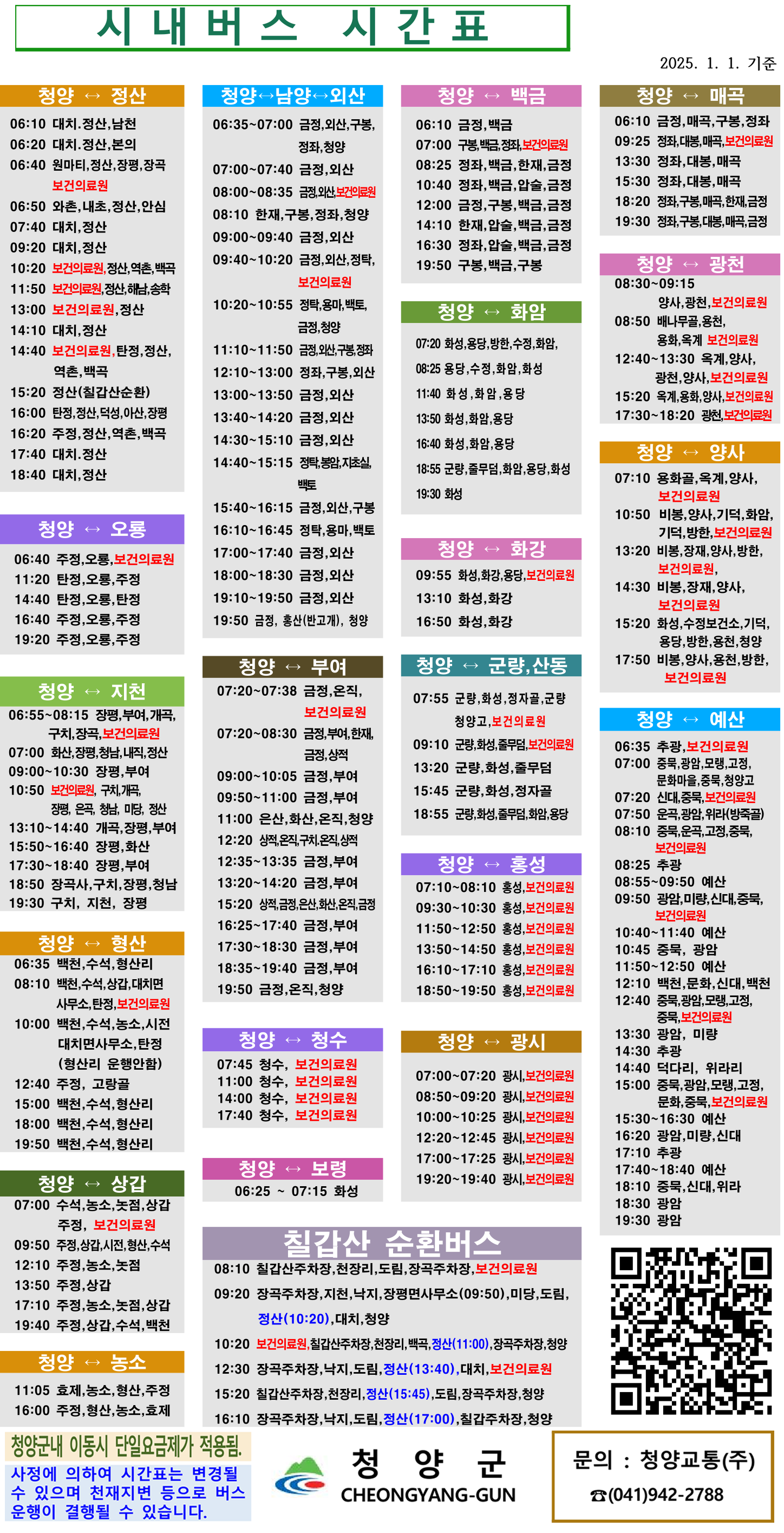 청양↔남양↔외산 노선정보: 구봉, 금정, 백토, 보건의료원, 봉암, 외산, 용마, 정좌, 정탁, 지초실, 청양, 한재, 홍산(반고개)