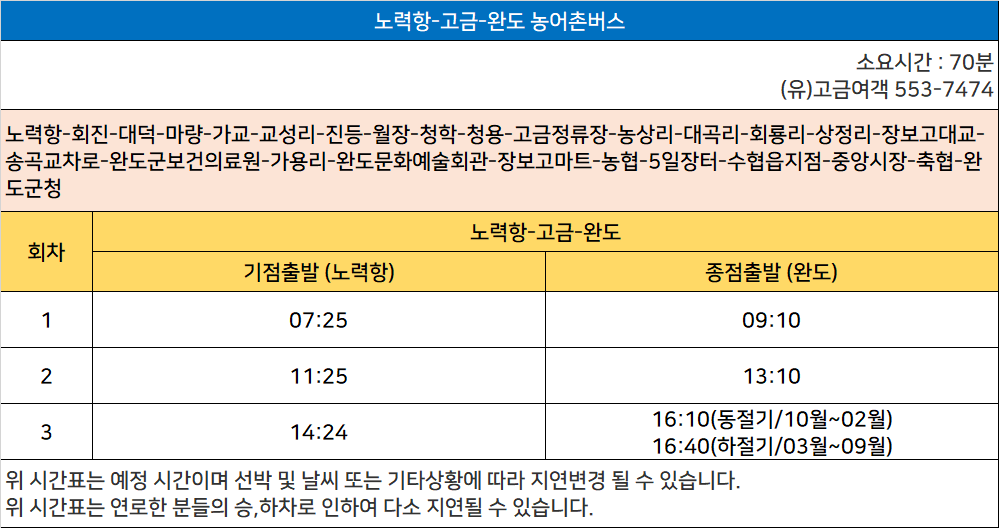 고금 시외버스 정류장 시간표/요금표 2025년 04월 27일 기준