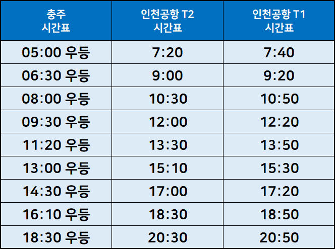 충주에서 인천공항 가는 공항버스 리무진 시간표