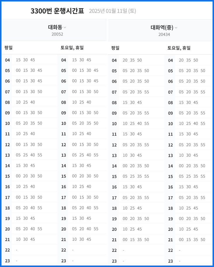 3300 출발 시간표