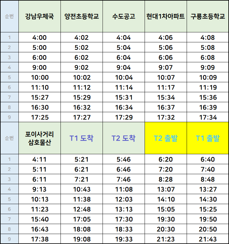 ▶ 개포 강남우체국에서 인천공항 가는 공항방향 노선 & 출발 시간표